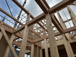 当日早朝まで大雨でしたが無事上棟時には晴れ、すばらしい上棟日和となりました^^